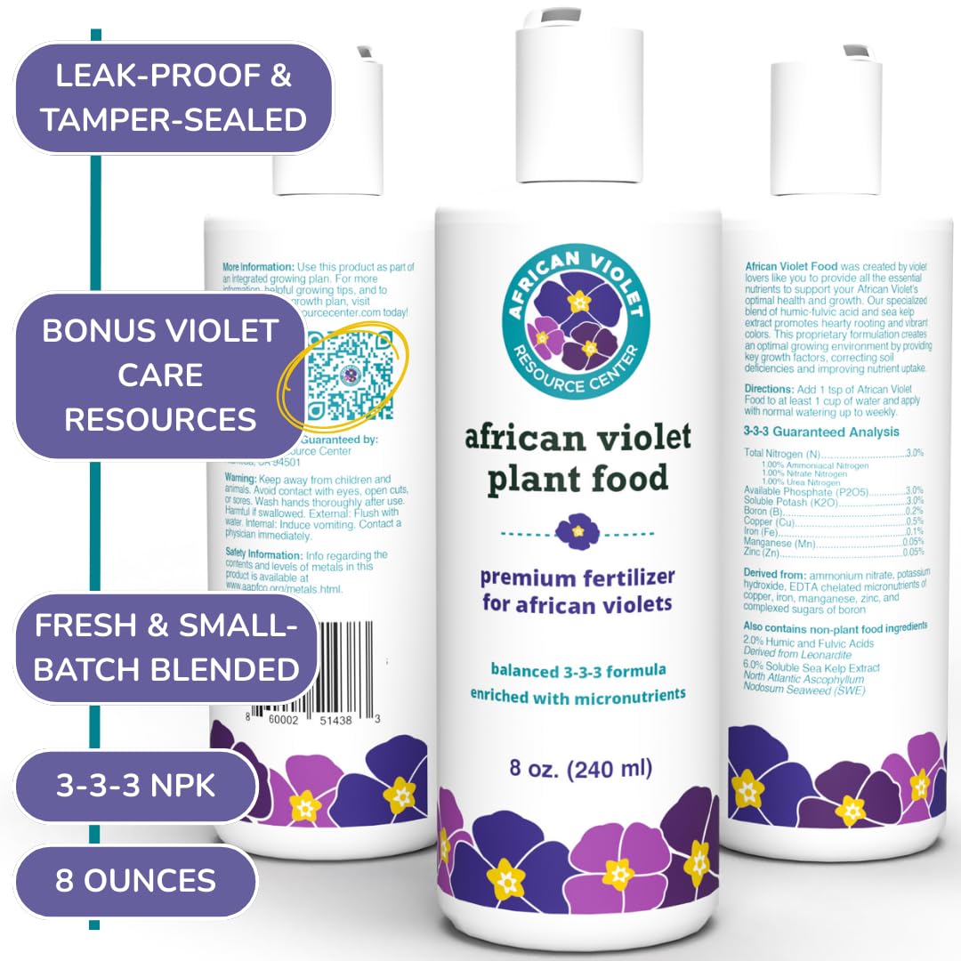 "I bought some beautiful African violets online, and the seller recommended this fertilizer. It matched perfectly—my plants responded amazingly, and the simple instructions made it so easy to use!"
