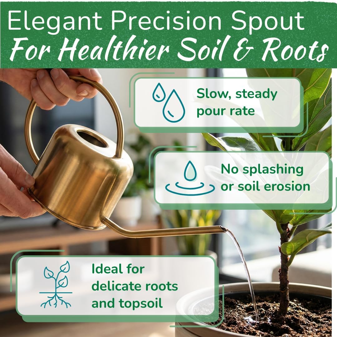 Precision spout targets the root zone to avoid splashing in smaller pots